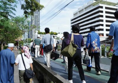 Our time together was shaped around field visits, strategy development and shared learning. We began with a site visit to the Baan Don Mosque community in Bangkok, a neighbourhood located within one of the city’s last remaining green spaces. Home to over 1,400 residents, the community has maintained a strong sense of place and continuity despite the pressures of rapid urban development. Listening to residents reflect on the environmental and social changes they have experienced over time added valuable context to our discussions on resilience, justice and lived experience.